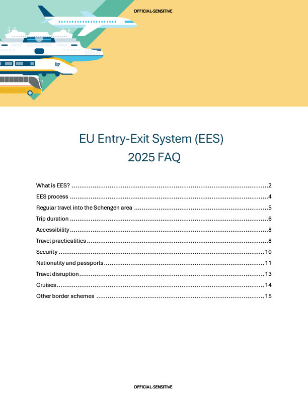 Finally, please also see the comprehensive FAQ document. This is designed to support Trade Associations and Travel Organisers in communicating EES to consumers but should not be distributed externally to passengers and travellers.